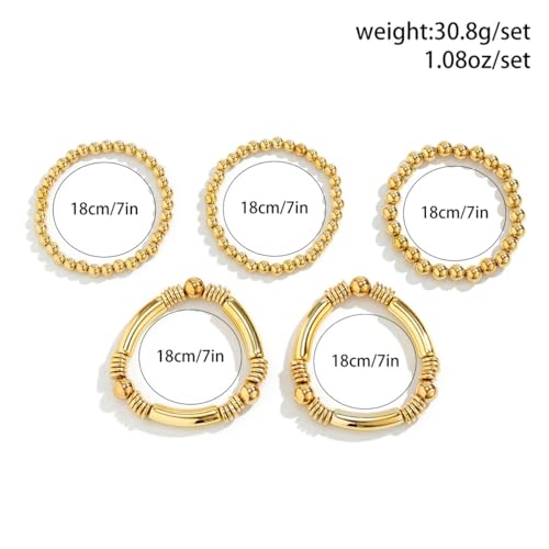 5Pcs Gold Bead Bracelets Set for Women,14K Gold Plated Stackable Bead Ball Bracelets Set,Adjustable Chunky Bangles Bracelets,Boho Stretch Bead Ball Bracelet for Women 5