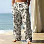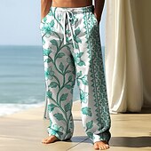 More information about Men's Trousers Baggy Pants Casual Pants Elastic Drawstring Waist Linen-Like Pants with Pockets Floral Print Flowers Full Length Outdoor Vacation Vacation White & Blue Light Khaki Inelastic