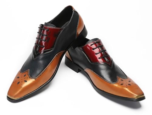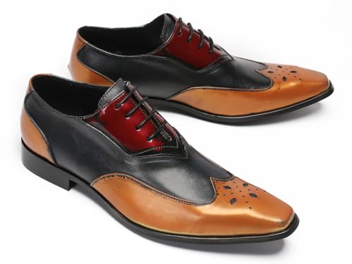 Santimon Mens Oxfords Casual Dress Leather Three Tone Formal Derby Wedding Prom Ballroom Halloween Fashion Western Walking Shoes for Men 6