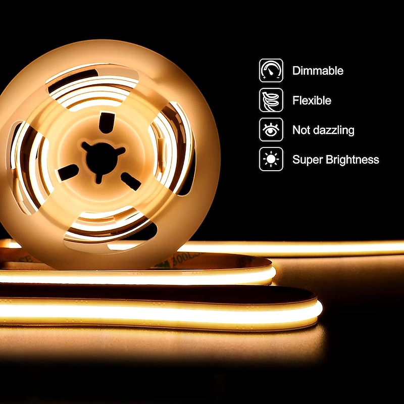 $33.99 - 2~5m COB LED Strip Ligh 640/960/1600 LEDs 10mm Warm White Red Blue Yellow 12V for Under Cabinet Vanity Mirror Bedroom Kitchen 2025. Shop for cheap COB Strip Lights online? Buy at lightinthebox.com on sale today!