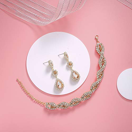 HOT ! Silver/Gold Plated Bridal Wedding Rhinestone Earrings Bracelet Set for Wedding Brides Bridesmaids Crystal Stone Dangle Drop Earrings Link Tennis Bracelet Set for Women Wedding