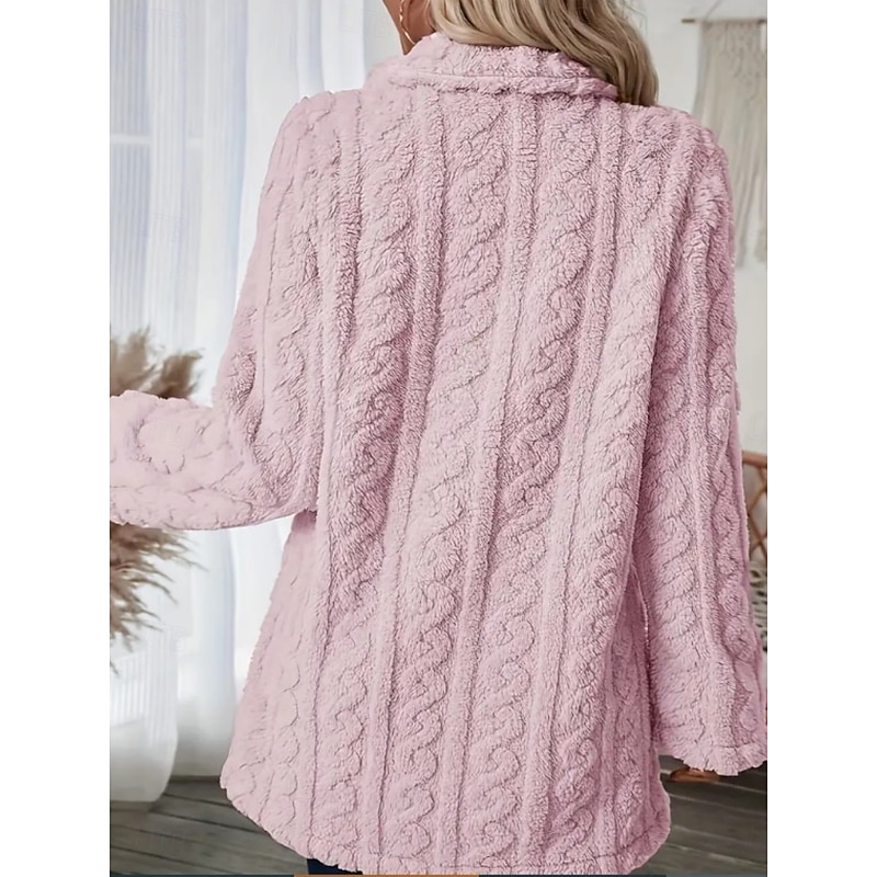 Women's Fleece Jacket Teddy Coat Warm Breathable Pocket Fleece Lined Casual Plain Vacation Street Casual Daily Wear Double Breasted Long Notch Lapel Regular Fit Long Sleeve Outerwear Black White Pink 12