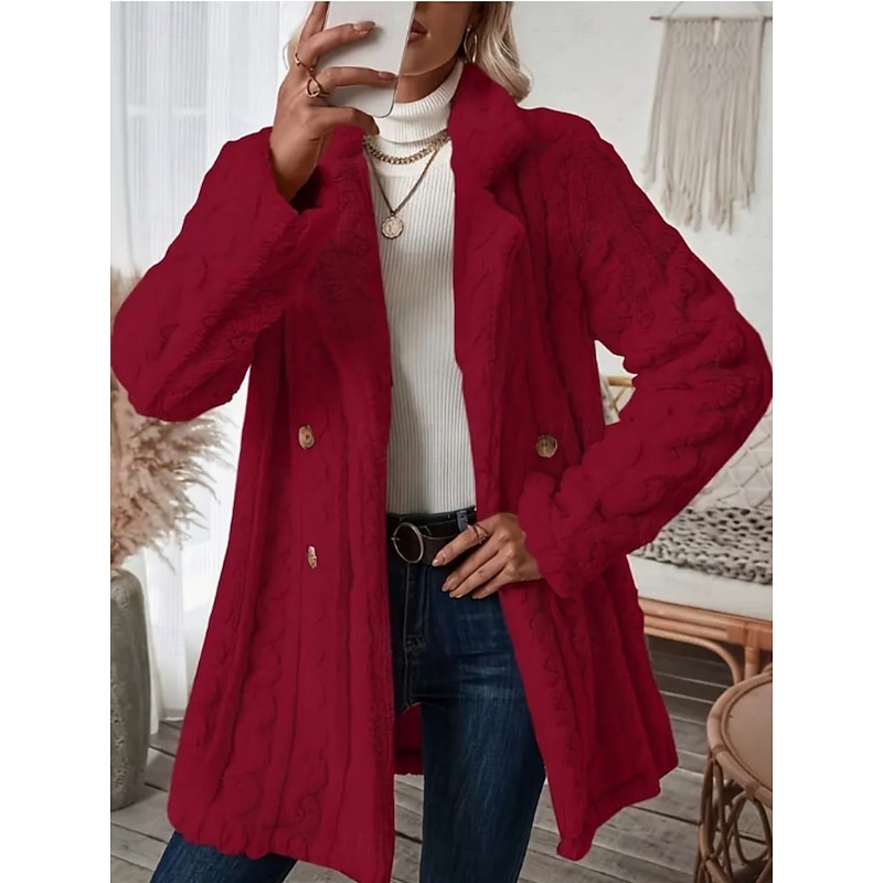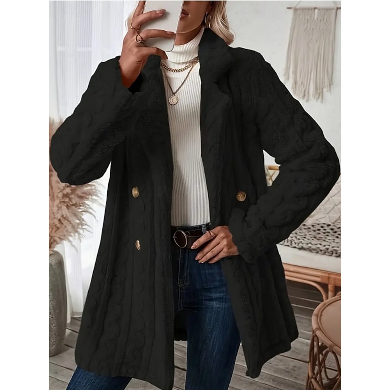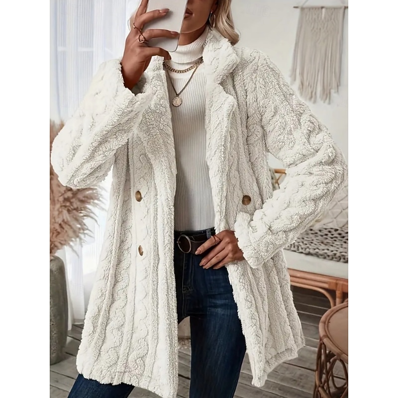 More information about Women's Fleece Jacket Teddy Coat Warm Breathable Pocket Fleece Lined Casual Plain Vacation Street Casual Daily Wear Double Breasted Long Notch Lapel Regular Fit Long Sleeve Outerwear Black White Pink