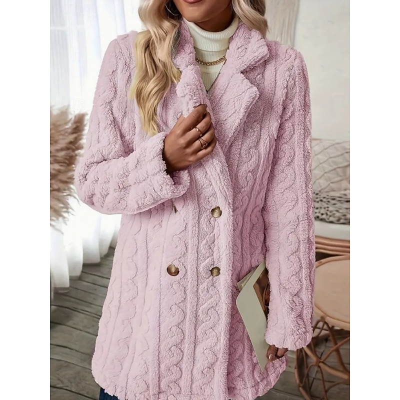 HOT ! Women's Fleece Jacket Teddy Coat Warm Breathable Pocket Fleece Lined Casual Plain Vacation Street Casual Daily Wear Double Breasted Long Notch Lapel Regular Fit Long Sleeve Outerwear Black White Pink