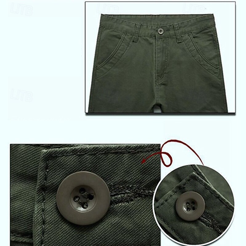 Highlights [Fabric] Crafted from 100% cotton, these men's cargo pants offer a durable and breathable option suitable for various activities. The high-quality cotton ensures comfort for everyday wear and outdoor adventures. [Fit] Featuring a regular fit and a mid-waist design, these pants provide a comfortable and relaxed feel. The straight-leg cut offers ease of movement, making them versatile for both casual and outdoor settings. [Design Highlights] The pants boast a functional design with multiple pockets, including side cargo pockets with button closures and back flap pockets, offering ample storage space for essentials. The classic button fly adds to the timeless appeal, making these cargo pants a staple for any wardrobe. [Occasions] Perfect for everyday wear, outdoor activities, camping, and hiking, these pants are designed to keep you comfortable and stylish. Pair them with a simple t-shirt and sneakers for a laid-back, yet polished look suitable for various occasions. [Size Range] Available in a wide range of sizes from 28 to 40, these cargo pants cater to different body types, ensuring a perfect fit for your needs. Choose from colors like Brown, Green, Black, and Khaki to complement any outfit.
