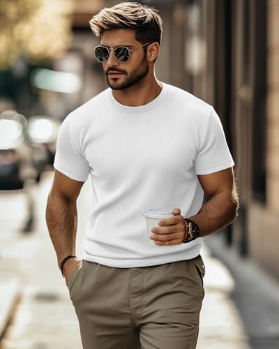 • Crew Neck Ribbed T-Shirt: The design of the men's casual shirts is simple and chic. The rib adds a sense of fashion; The classic crew neck combined with the flat hem makes you look more decent, making them suitable for formal and business occasions