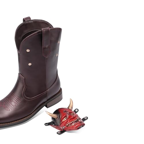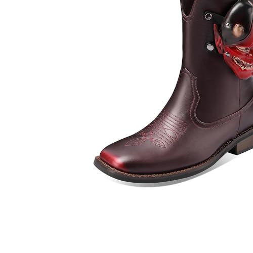 • Design:The boots come with pull straps on both sides for easy on and off. The red Ghost mask is freely removable and turns into a vintage classic cowboy boot when removed. The mid-calf height and low heel design ensure comfortable walking.