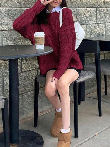 • Cable Knit Sweater for Women: Featuring a comfortable crew neck design and long sleeves, this women oversized sweater is perfect for layering over your favorite tops and pants. Whether you wear it with jeans, leggings, or a skirt, it's sure to add a touch of charm to your outfit