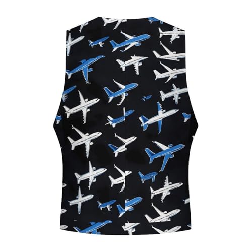 Cartoon Airplane Men's Suit Vests Business Formal Dress Vest V-Neck Waistcoat for Wedding Casual 3