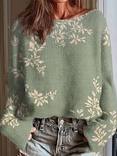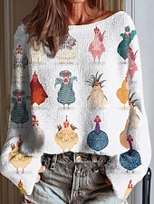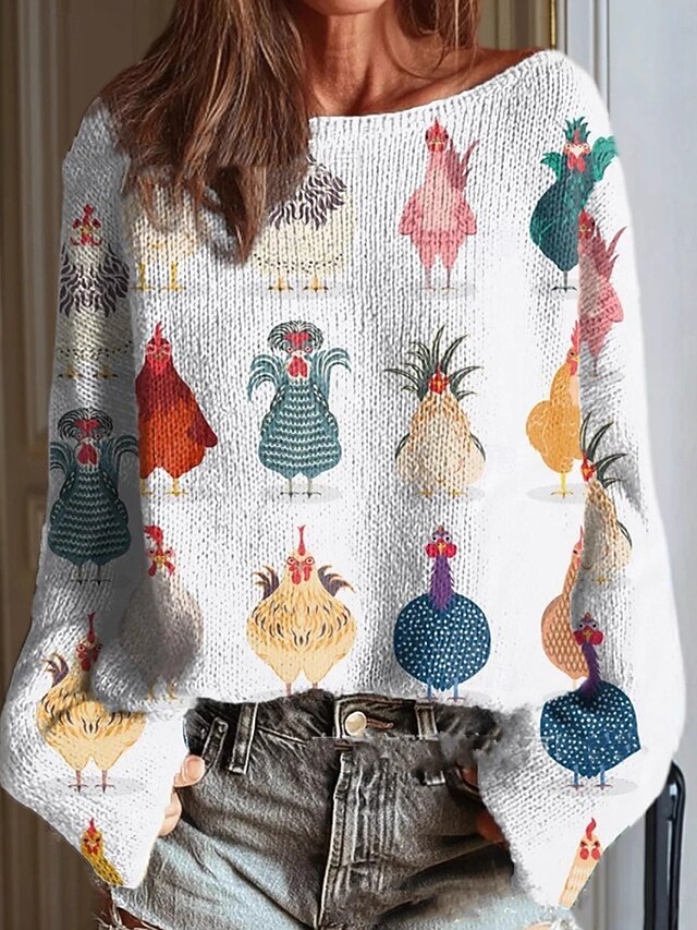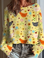 More information about Women's Sweater Casual Soft Graphic Animal Ribbed Crew Neck Knitted Print Long Sleeve Regular Tops Knit Outdoor Daily Weekend White Yellow Fall Winter