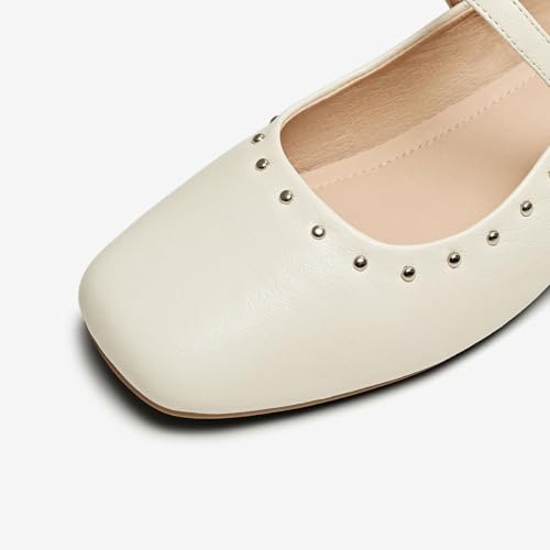 • [Flat Mary Jane Shoes] Hidden heel measures approx. 4 cm/1.7 inches.(varied slightly by size). With soft leather, closed square toe, adjustable buckle straps and studs, these backless flats are a must-have in every woman's closet.