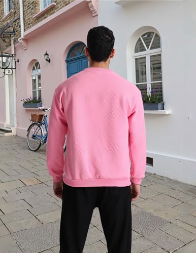 Men's Crewneck Pullover Sweatshirt Soild Color Geometric Texture Crewneck Sweatshirts 4