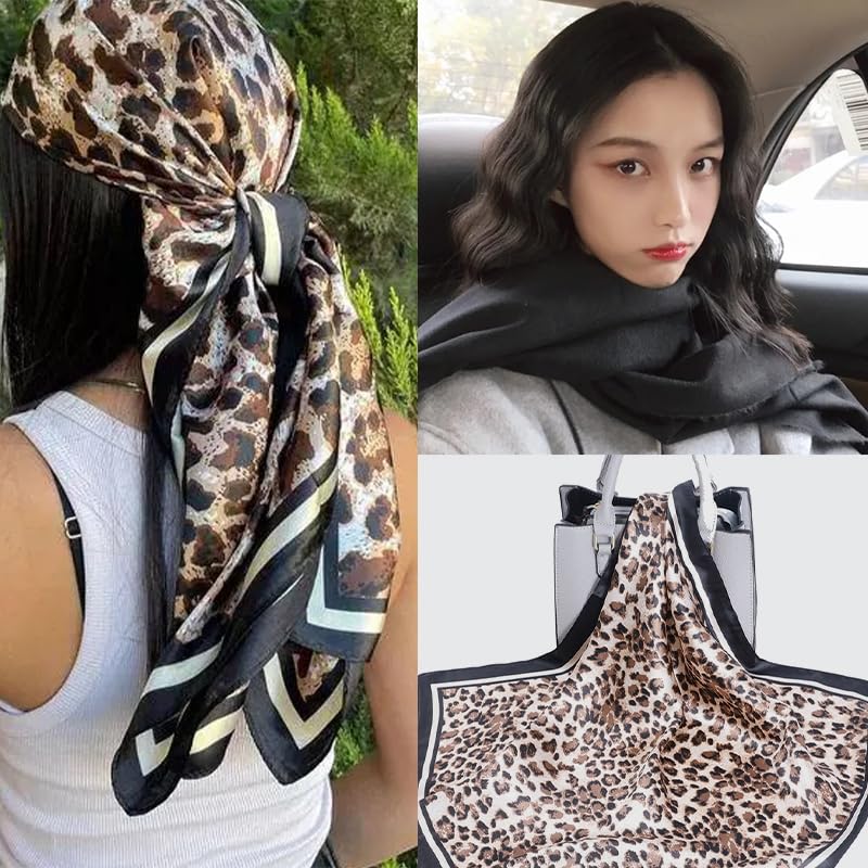 • Aesthetic Square Neck Scarves for Women Girls Fashion: This leopard silk head scarf adds a trendy and fashionable element to any outfits, making this animal print scarf as a perfect satin silk scarf for women hair braids, adding a vintage fashion touch to any style, as vintage head scarf headbands for women girls, silk scarf for women neck