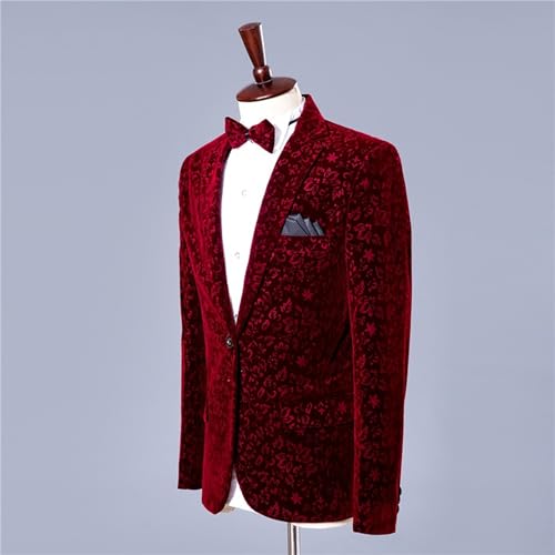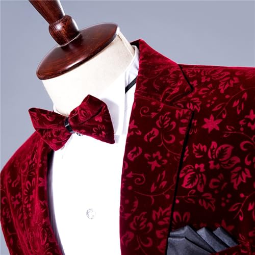 One Button Dress Party Suit Floral Tuxedo Mens 2 Piece Velvet Suits Slim Fit Mens Floral Velvet Suit