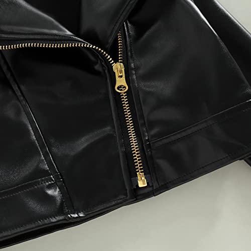 Kids PU Leather Jacket Long Sleeve Turn-Down Collar Zipper Closure Casual Outwear for Girls Boys 6