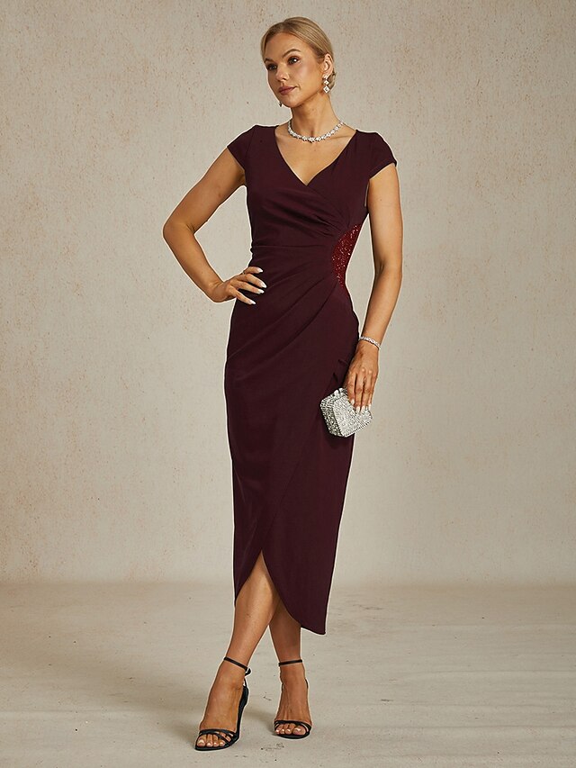 More information about Women's Maxi Dress Sheath Dress Elegant Regular Fit Solid Color Short Sleeve V Neck Wine Summer Spring