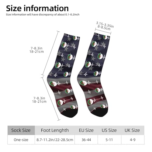 HOT ! Algeria Flag Heartbeat Algerian Pride Adult Polyester Crew Socks Breathable Moisture-Wicking Athletic Running Gym1