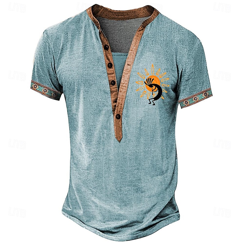 More information about Men's Graphic Tribal Henley Shirt Short Sleeve 3D Print Fashion Designer Basic Daily Summer Light Blue Green Khaki Stand Collar Henley T-Shirt