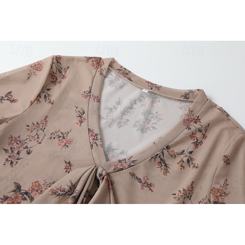 More information about Women's Western Blouse Blouse Chiffon Tops Floral Bohemia Vintage Boho Long Sleeve V Neck Regular Tops Daily Holiday Lace up Print Khaki Summer