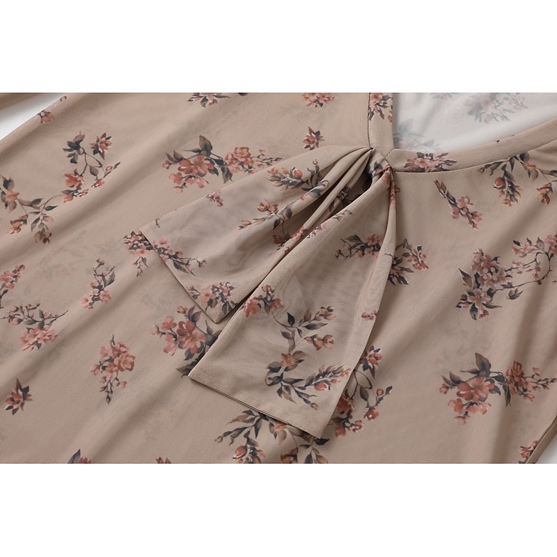 Women's Western Blouse Blouse Chiffon Tops Floral Bohemia Vintage Boho Long Sleeve V Neck Regular Tops Daily Holiday Lace up Print Khaki Summer 7