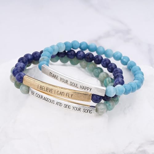 HOT ! Custom Bracelet for Women, Nature Stone Bracelet with Personalized Name, Custom ID, Engraved, Date, Quote, Coordinates, Inspirational Personalized Gifts for Women, Men, Friend