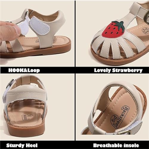 Toddlers Little Girls T-Strap Strawberry Closed Toe Sandals Princess Flat Shoes Summer Flower Girl Shoes 4