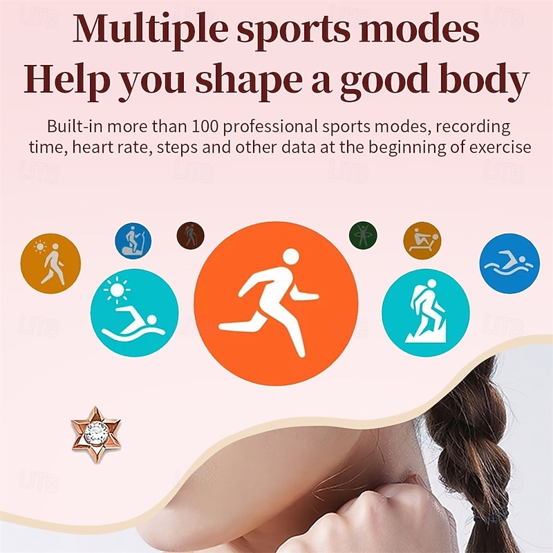 696 MK88 Smart Watch 1.75 inch Smart Band Fitness Bracelet Bluetooth Call Reminder Sleep Tracker Heart Rate Monitor Compatible with Android iOS Women Hands-Free Calls Message Reminder IPX-0 36mm 11