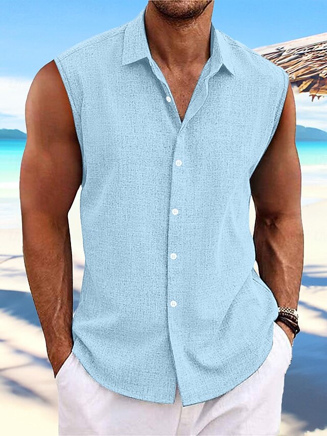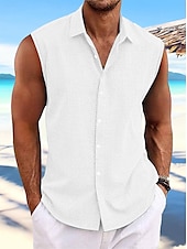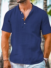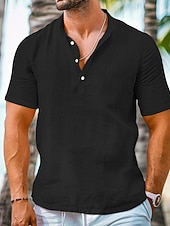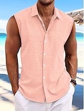 More information about Men's Shirt Linen Shirt Summer Shirt Beach Wear Button Up Shirt Plain Vacation Curise White Pink Light Blue Short Sleeve Collar Summer Spring Clothing Apparel
