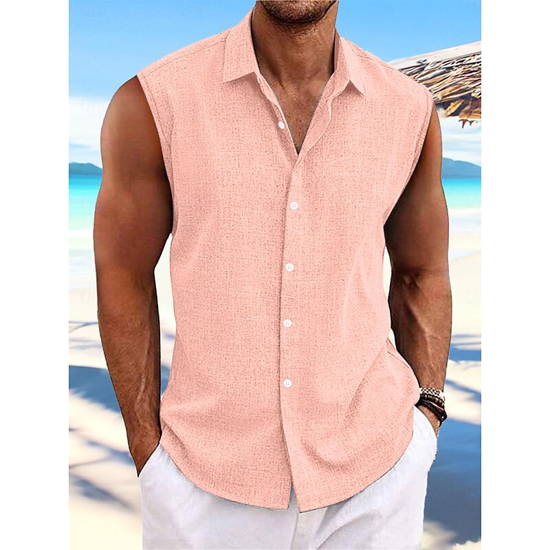 Men's Shirt Linen Shirt Summer Shirt Beach Wear Button Up Shirt Plain Vacation Curise White Pink Light Blue Short Sleeve Collar Summer Spring Clothing Apparel