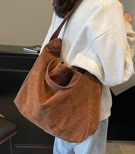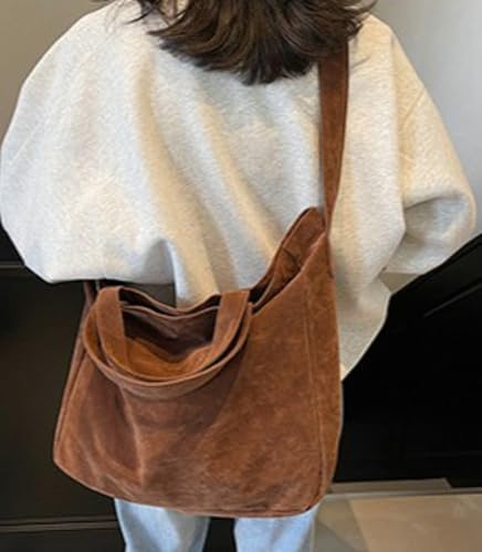 • Large Capacity: Our large-capacity brown suede handbag, size 19.6 x 7.0 x 14.9 inches, can easily accommodate tablets, cosmetics, phones, umbrellas, water bottles, and other essentials; It fully meets your daily needs and is very practical
