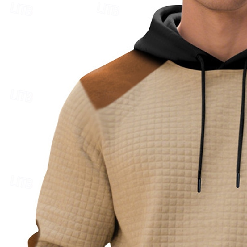 More information about Men's Hoodie Waffle Hoodies Pullover Hoodie Sweatshirt Black Army Green Khaki Gray Hooded Plain Patchwork Color Block Sports & Outdoor Casual Daily Streetwear Cool Sportswear Spring & Fall Clothing