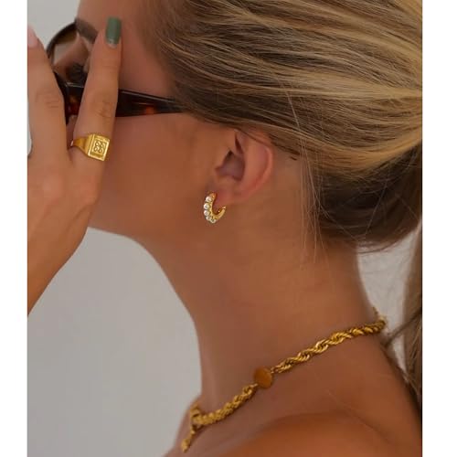 14k Gold Plated Cubic Zirconia Hoop Earrings for Women Sterling Silver Post Cuff Earrings Huggie Stud for Women Girls Hypoallergenic Trendy Jewelry Gift Birthday Anniversary Wedding Earring 7