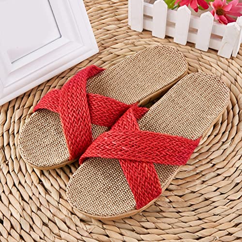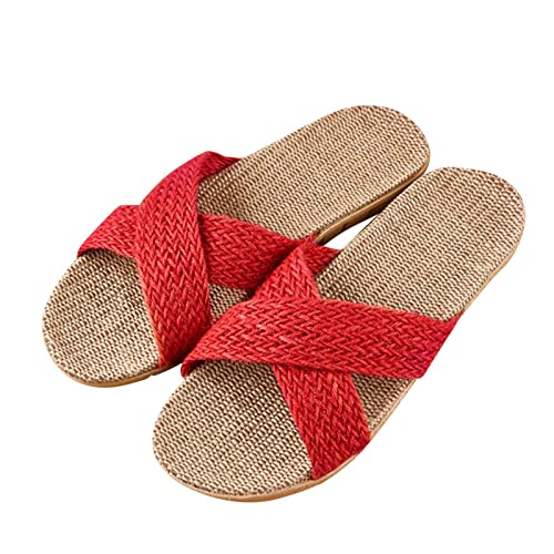 Womens Sandals, Women's Cross Straw Sandals Summer Casual Outdoor Sandals Beach Slippers Non-Slip Comfortable Lightweight Flat Sandals 6