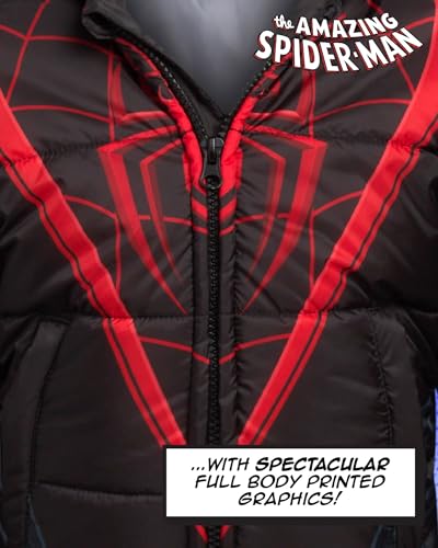 Marvel Boys' Puffer Jacket - Spiderman, Miles, and Spider Gwen Quilted Zip Up Insulated Hooded Winter Jacket for Boys (2T-7) 7