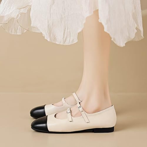 INEELUYI Women's Mary Jane Flats Retro Square Toe Soft Ballet Flats Comfort One Line Strap Dress Flats 6