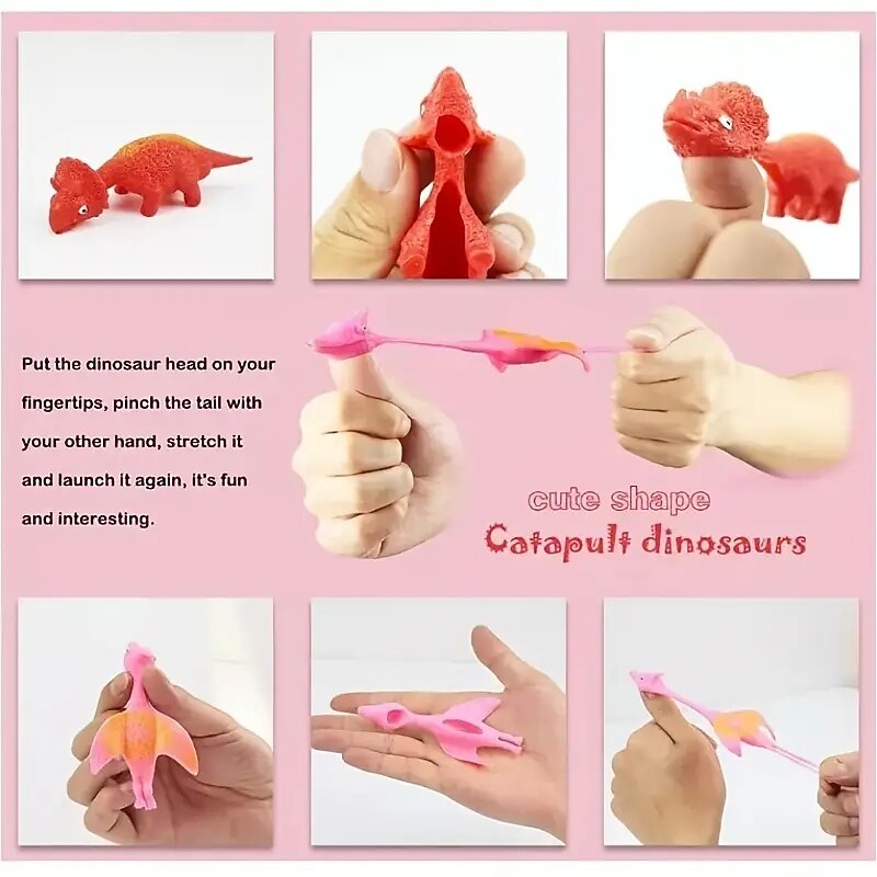 HOT ! 10PCS Catapult Launching Dinosaur Toys - Fun Tricky Slingshot for Kids' Party Gifts & Stress Relief!