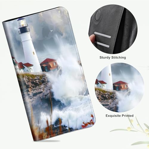 More information about Wallet for Men Women & Phone Purse Wallet, RFID Blocking PU Leather Dual Magnetic Clasp Closure Phone Purse + Credit Card Holder for Phone Organizer Ladies Travel Purse,Lighthouse Beacon Clouds