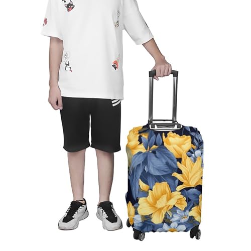 HOT ! Blue Base Yellow Floral Printed Luggage Cover Protector, Fits 18-32 Inch Luggage