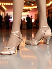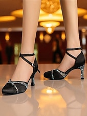 More information about Women's Gold Satin Dance Shoes with Rhinestone Heels - Elegant Strappy Ballroom and Latin Performance Shoes