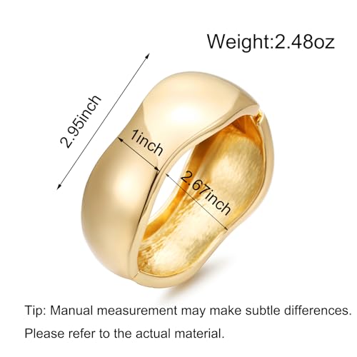 Material: CopperMetal type: CopperClasp type: BuckleGem type: No gemstoneItem type name: Bangle BraceletsJoin Prime Cancel anytimeChunky Gold Bangle: gold plated ensures long-lasting brilliant finish. The cuff bracelets for women size of the chunky metal bracelet is 2.76*2.64*1.26in, and its total weight is 2.56 oz. hypoallergenic, and comfortable to wearGold Cuff Bangle Bracelet: This gold chunky bracelet is a Wide and irregular classic style with a highly polished gold plated surface, adding a touch of sophistication to any outfitWide Cuff Bangle: The gold chunky bangle is suitable for most wrists. Elegant and great for easy wear, versatile, and can be worn with a variety of outfits and stylesBig Bangle for Women: charming and elegant, easy to wear, simple but fashionable. With a simple meaning, interpret the light luxury style, and highlight your charmGold Chunky Bracelet:The classical irregular round design adds a touch of sophistication, making it a statement piece that stands out with grace Perfect for everyday use. excellent materials and excellent craftsmanship ensure long-lasting durability.