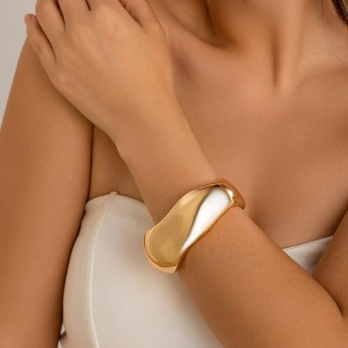 Chunky Gold/Silver Bangle Bracelets for Women Thick Arm Cuff Bangle Bracelet Wrist Wrap Bracelet Jewelry