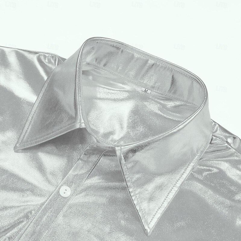 Metallic Retro Vintage 1970s Outfits Shirt Bell Bottom Pants Fancy Dress Men's Carnival Costume Halloween Carnival Masquerade Pride Parade Pride Month Fancy Party Adults Shirt Pants 6
