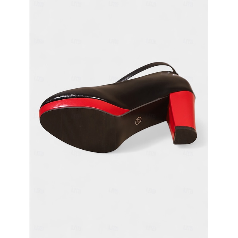 Women's Black Platform Pumps with Red Block Heels – Bold Color Contrast Round Toe Heels for Night Out, Parties, and Office Glam 4