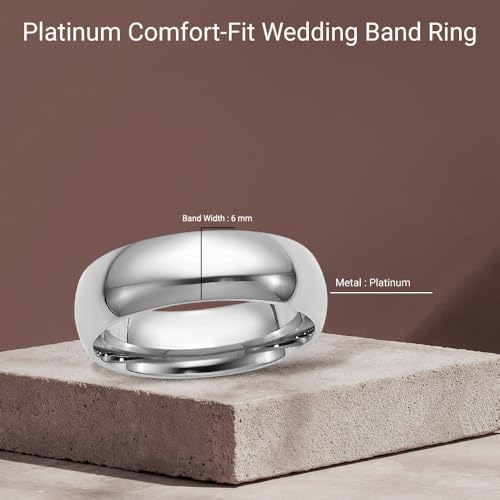 Diamond2Deal Platinum 6mm Comfort-Fit Wedding Band Ring 6