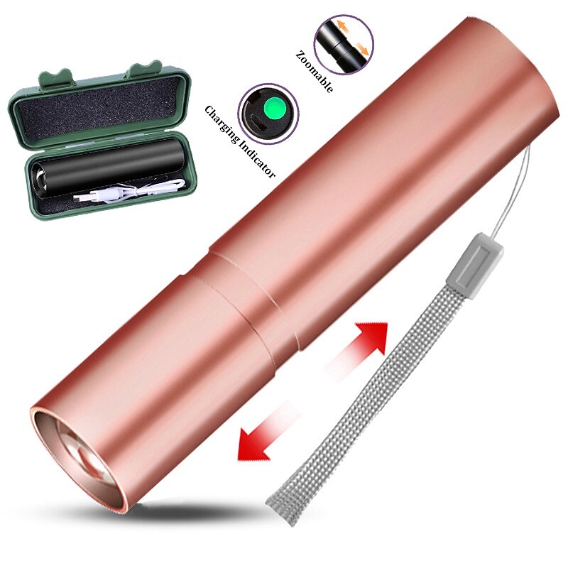 HOT ! Portable Mini LED Flashlight, LED Torch Rechargeable 3 Lighting Modes Waterproof Retractable Powerful Light Torch Outdoor Zoom Torch