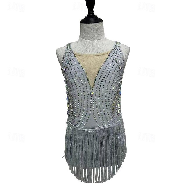 More information about Figure Skating Dress Women's Girls' Ice Skating Dress Grey Tassel Mesh Spandex Micro-elastic Training Skating Wear Crystal / Rhinestone Sleeveless Ice Skating Figure Skating