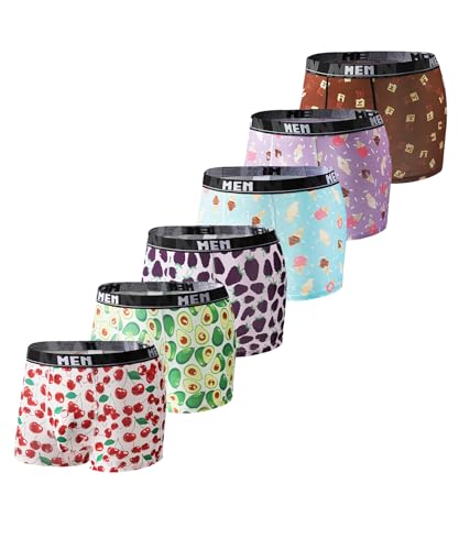 Men's Ice Silk Cartoon Pattern Boxer Briefs,Variety Pack Underwear,Cool&Comfortable Mid-Rise Trunks with Multiple Pack 6