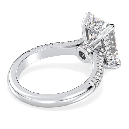 • 4.8 CARAT ENGAGEMENT RING - This Breath-taking Engagement ring features 4.3 carat Radiant cut Solitaire center stone and 4.8 carats Total Moissanites that dazzles with bold sparkle. This ring is crafted with 100% genuine Moissanite Gemstones,VVS1 Clarity D Color Solitaire Hidden Halo 925 Sterling Silver with White Gold Rhodium Fine Jewelry, it contains no CUBIC ZIRCONIA (CZ). Each stone is meticulously set under a microscope for an excellent finish.