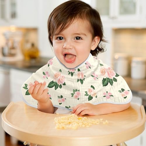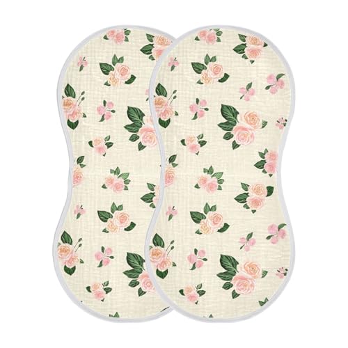 HOT ! Cream Rose Floral Muslin Baby Burp Cloths - Super Absorbent and Soft Burping Rags - Cotton Burp Clothes Set for Boys and Girls, 4 Pack
