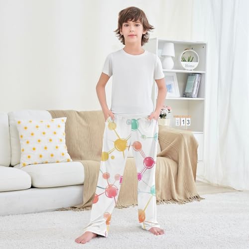 ZZXXB Cololful Molecule Formula Boys Long Pants gentle Trousers Elastic Waist Kids Lounge Bottoms with Pockets S-XL